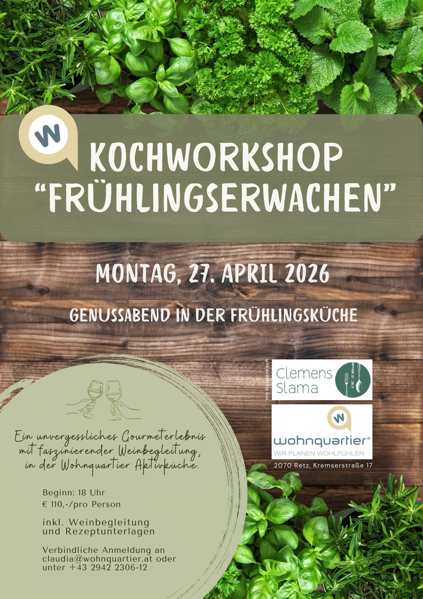 Anmeldungen bitte an claudia@wohnquartier.at - wir freuen uns auf einen schönen gemeinsamen Abend und auf viele tolle Momente!