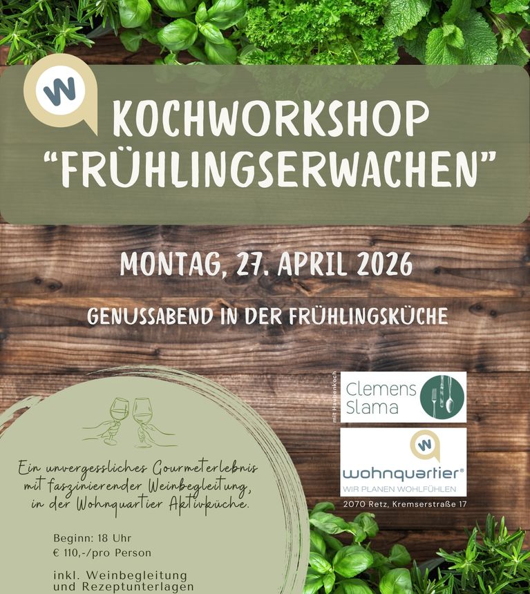 Es ist wieder soweit… Erleben Sie ein unvergessliches Gourmeterlebnis mit faszinierender Weinbegleitung, in unserer Wohnquartier Aktivküche.