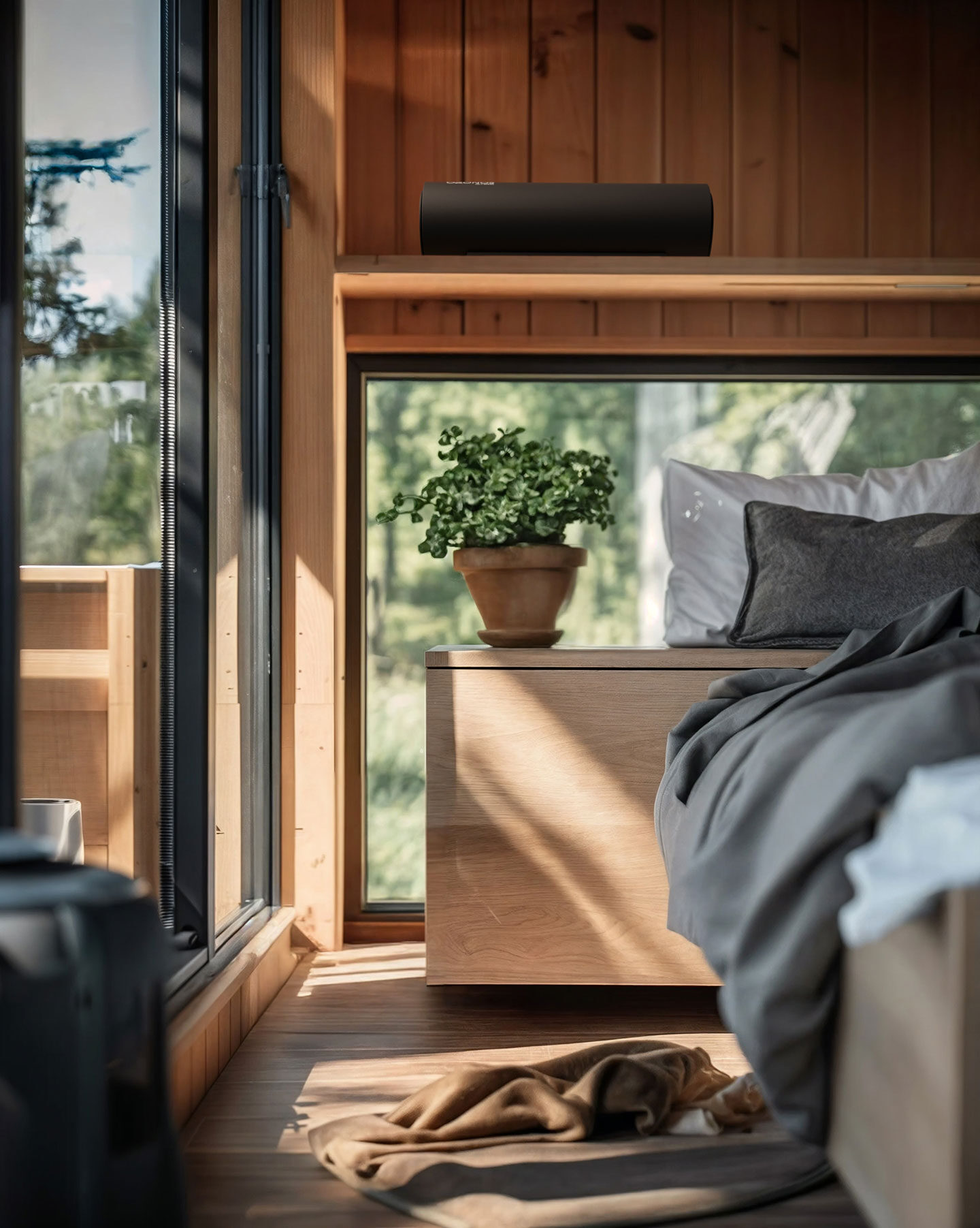 Er kann dazu auch mithilfe einer Wandhalterung befestigt werden, um Platz zu sparen und den Raum optimal zu nutzen. Für eine optimale Wirkungsweise empfehlen wir eine Höhe von ca. 2 m.