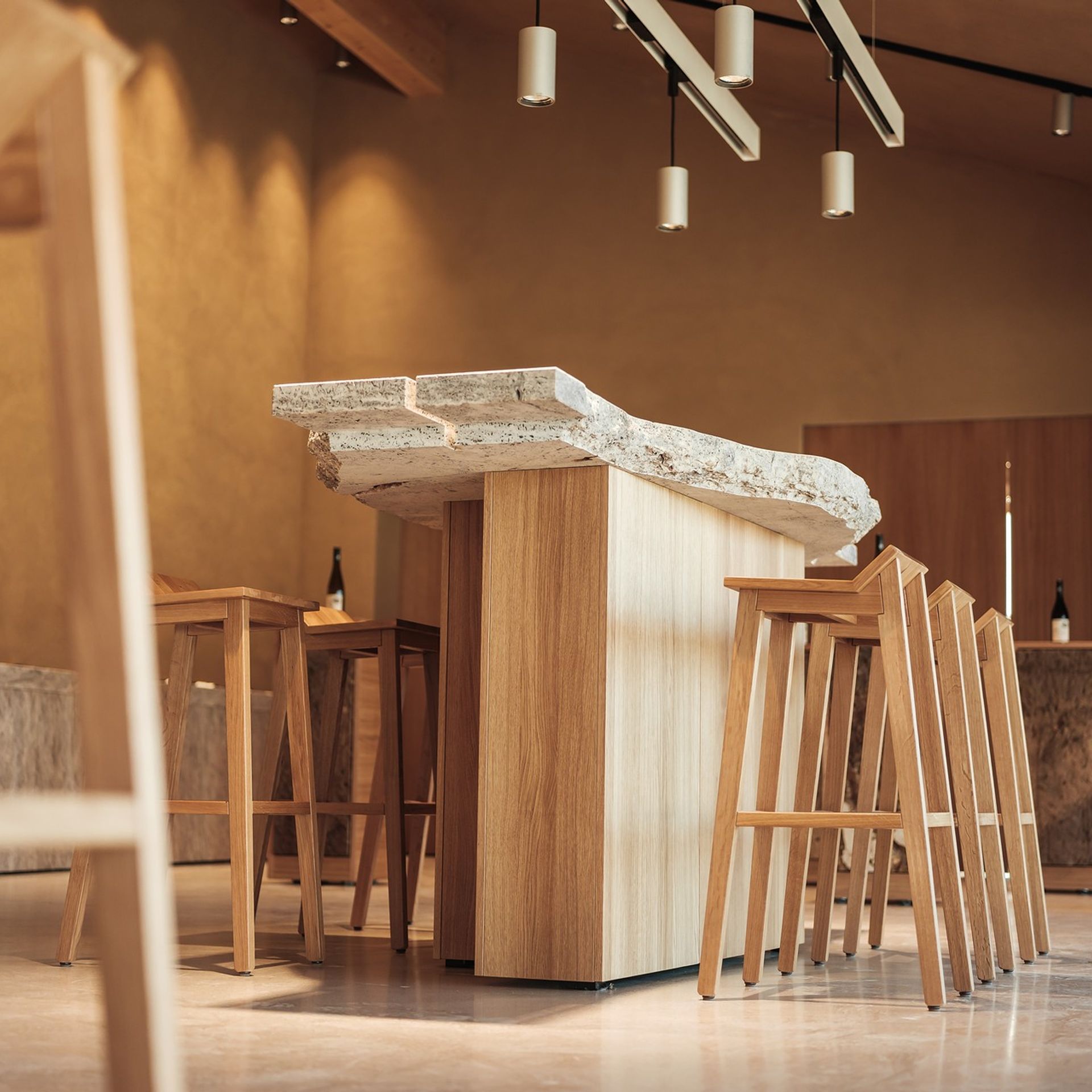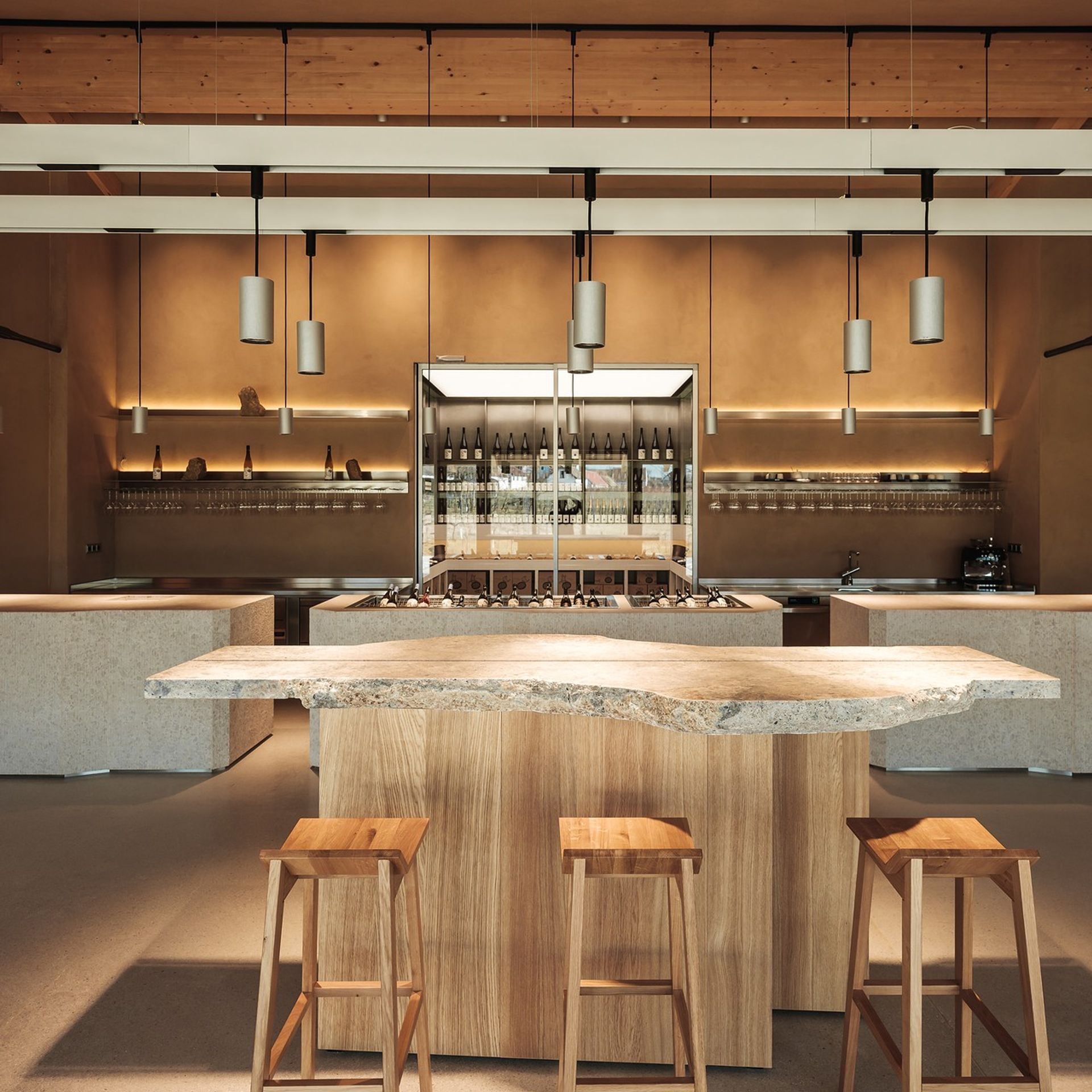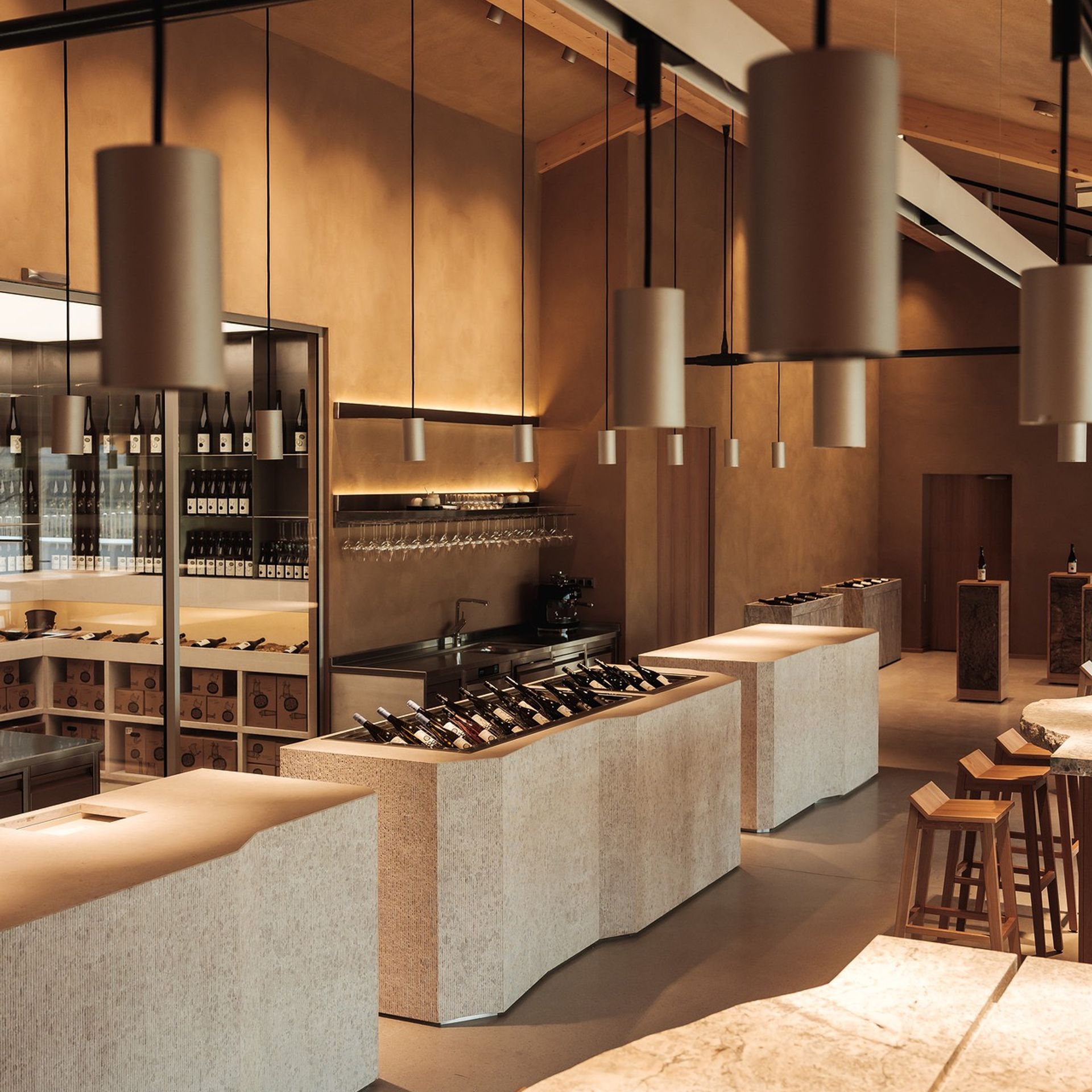 Wein erzählt Geschichten – wir geben ihnen Raum. Für Winzer gestalten wir Verkostungsräume und ganzheitliche Weinwelten, die Herkunft, Handwerk und Qualität spürbar machen. Mit durchdachten Raumkonzepten, hochwertigen Materialien und einer stimmigen Atmosphäre entstehen Orte, die begeistern und den Wein in den Mittelpunkt stellen.
