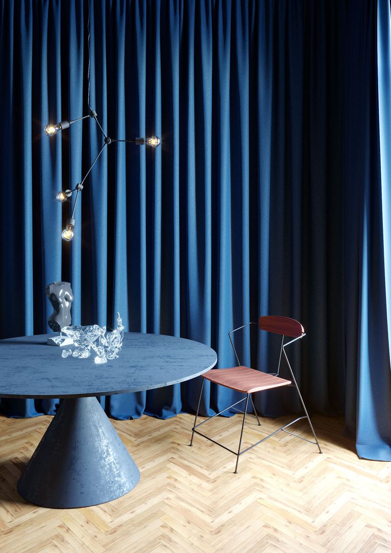 Raumhohe Vorhänge schweben entweder knapp über dem Boden oder liegen auf. Die schwebende Variante lässt sich besser sauber halten. Die aufliegende Gardine gibt einem Raum einen lässigen Chic, ist aber beim Staubsaugen oder Wischen unpraktisch.